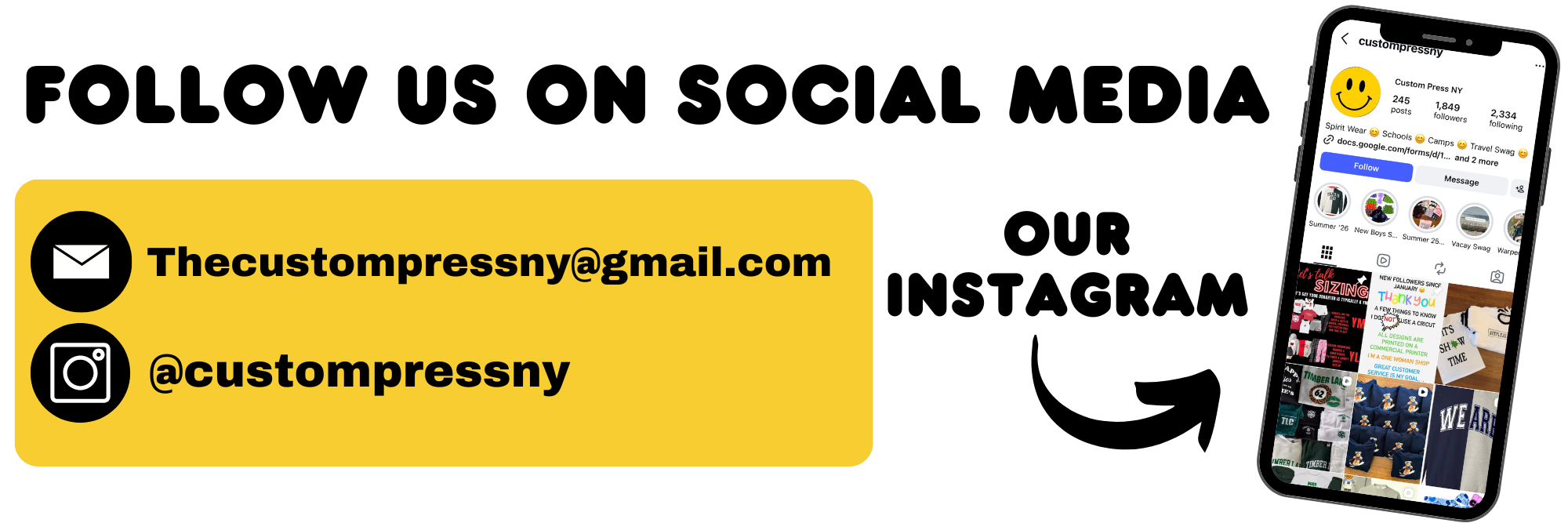 All questions regarding orders, custom inquires, and more should be sent to our email address Thecustompressny@gmail.com